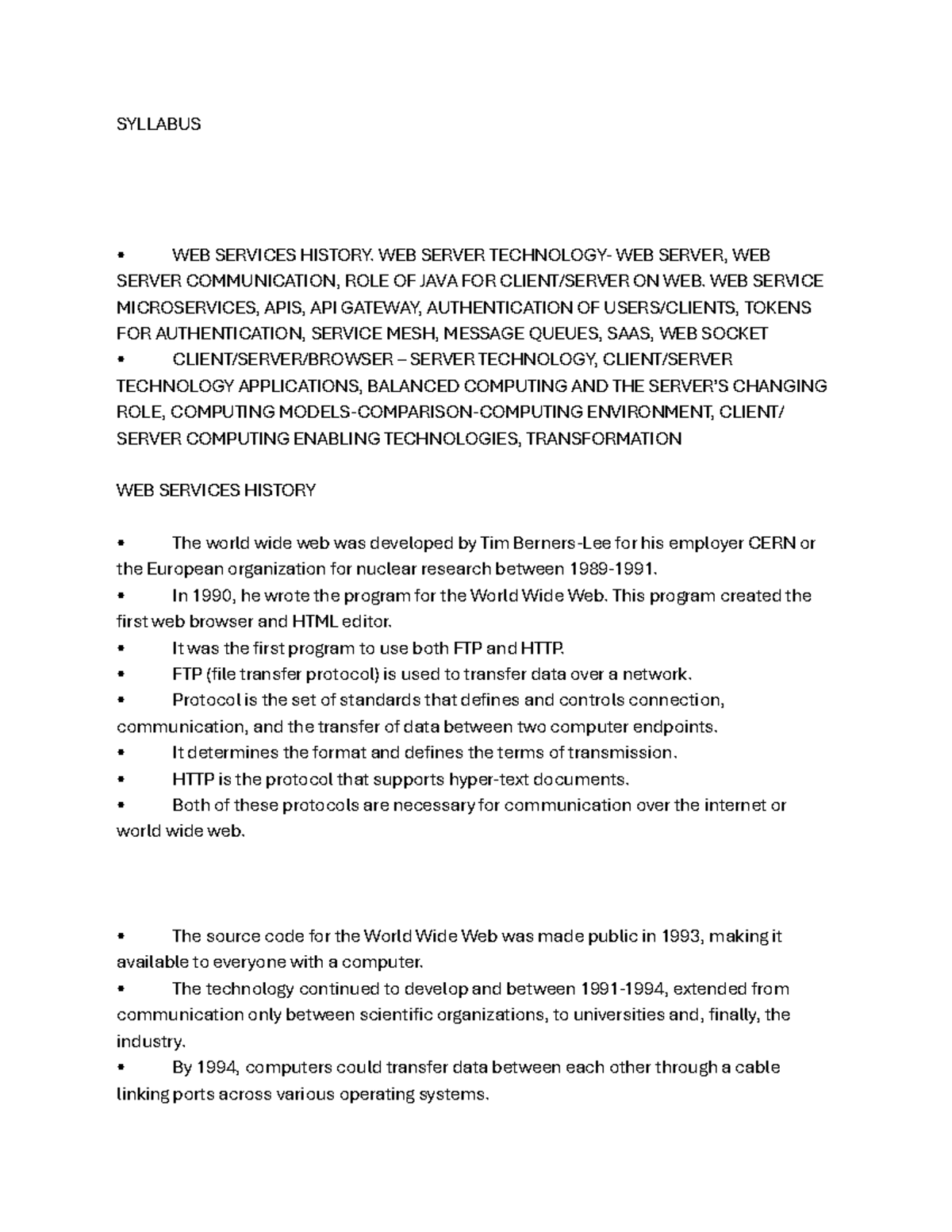 Syllabus - CSA 5: Web Services, Java, and Microservices Overview - Studocu