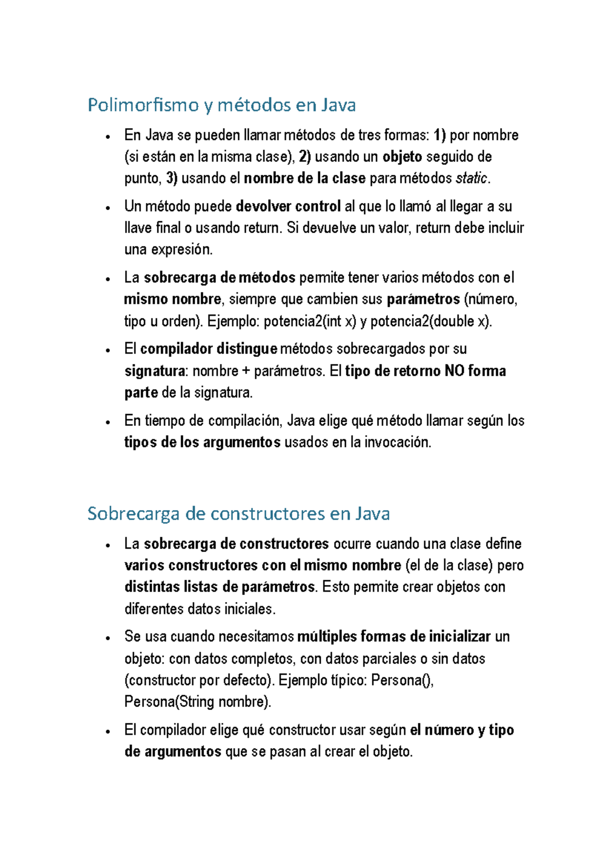 Polimorfismo y Sobrecarga de Métodos en Java - Studocu