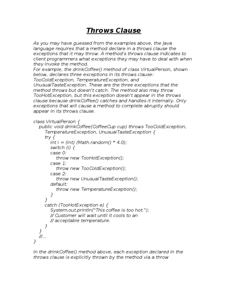 Java throws clause documentation | PDF | String (Computer Science ...