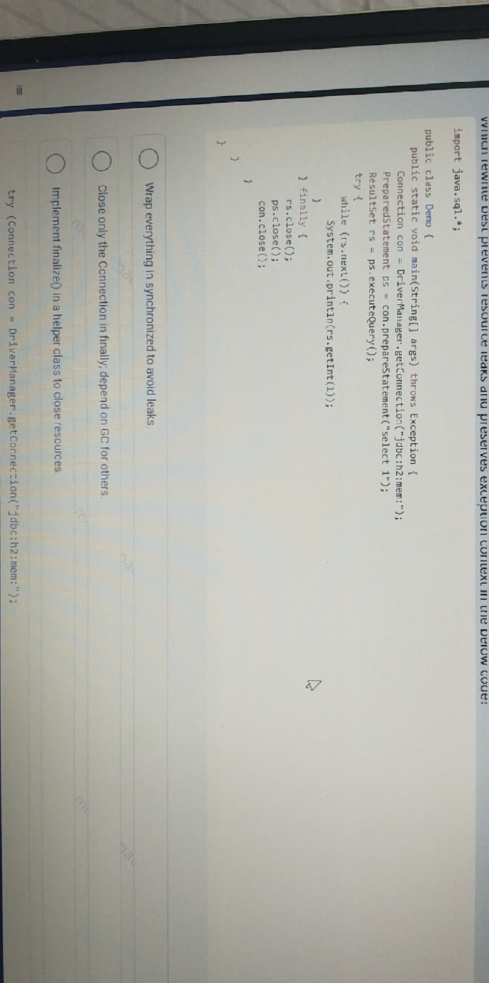 Which rewrite best prevents resource leaks
