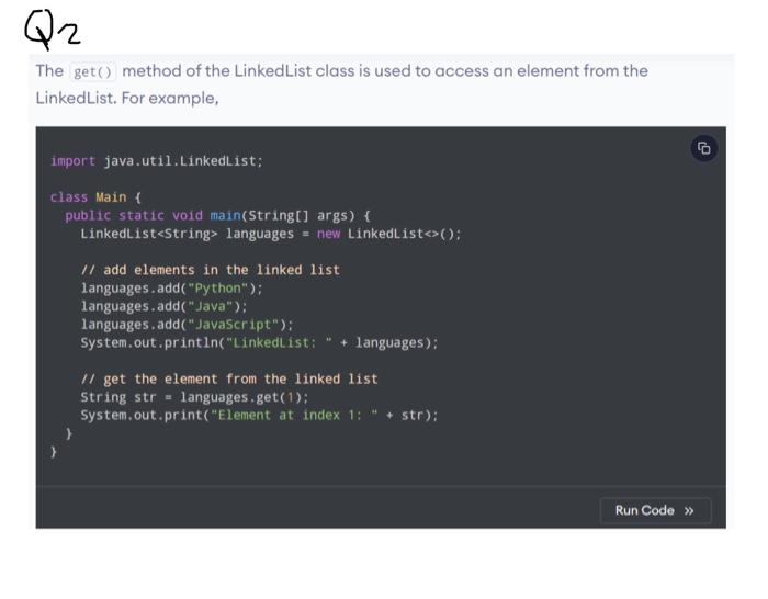 Example: Create LinkedList in Java import java.util. | Chegg.com