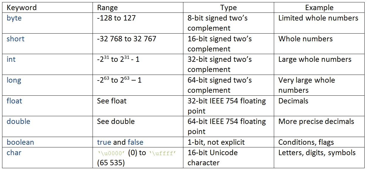 Primitive Data Types in Java - int, char, byte, short, long, float ...