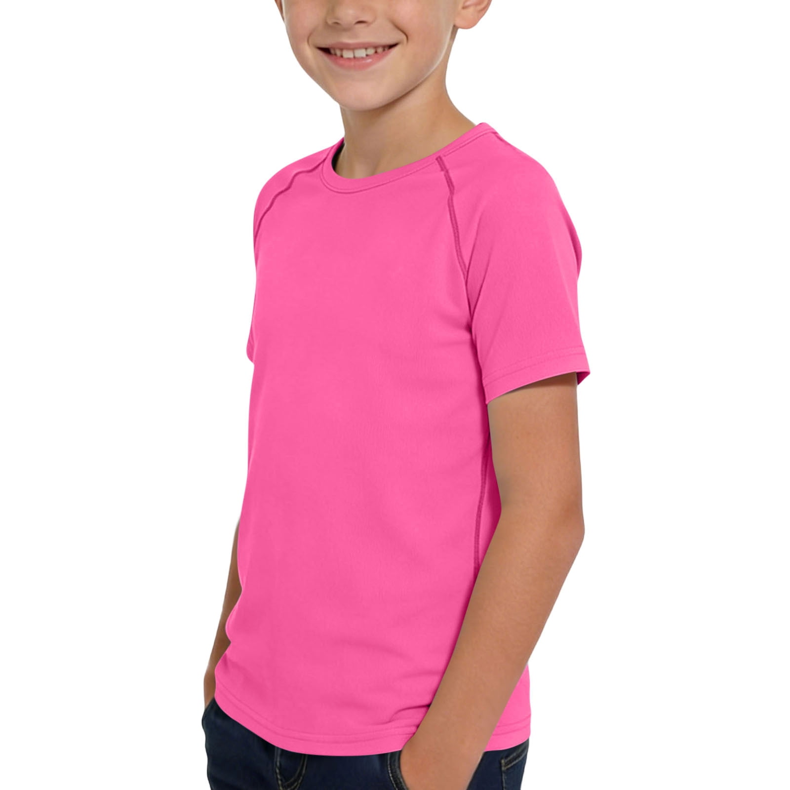 Amidoa Girls Short Sleeve Crewneck Summer Solid Color T Shirts Kids ...