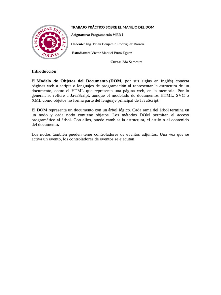 Trabajo Práctico Sobre El Manejo Del Dom | PDF | Modelo de objeto de ...