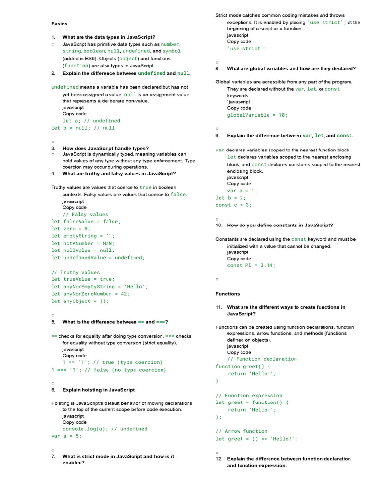2.1 Answers - Js Interview Questions | PDF | Java Script | Computer ...
