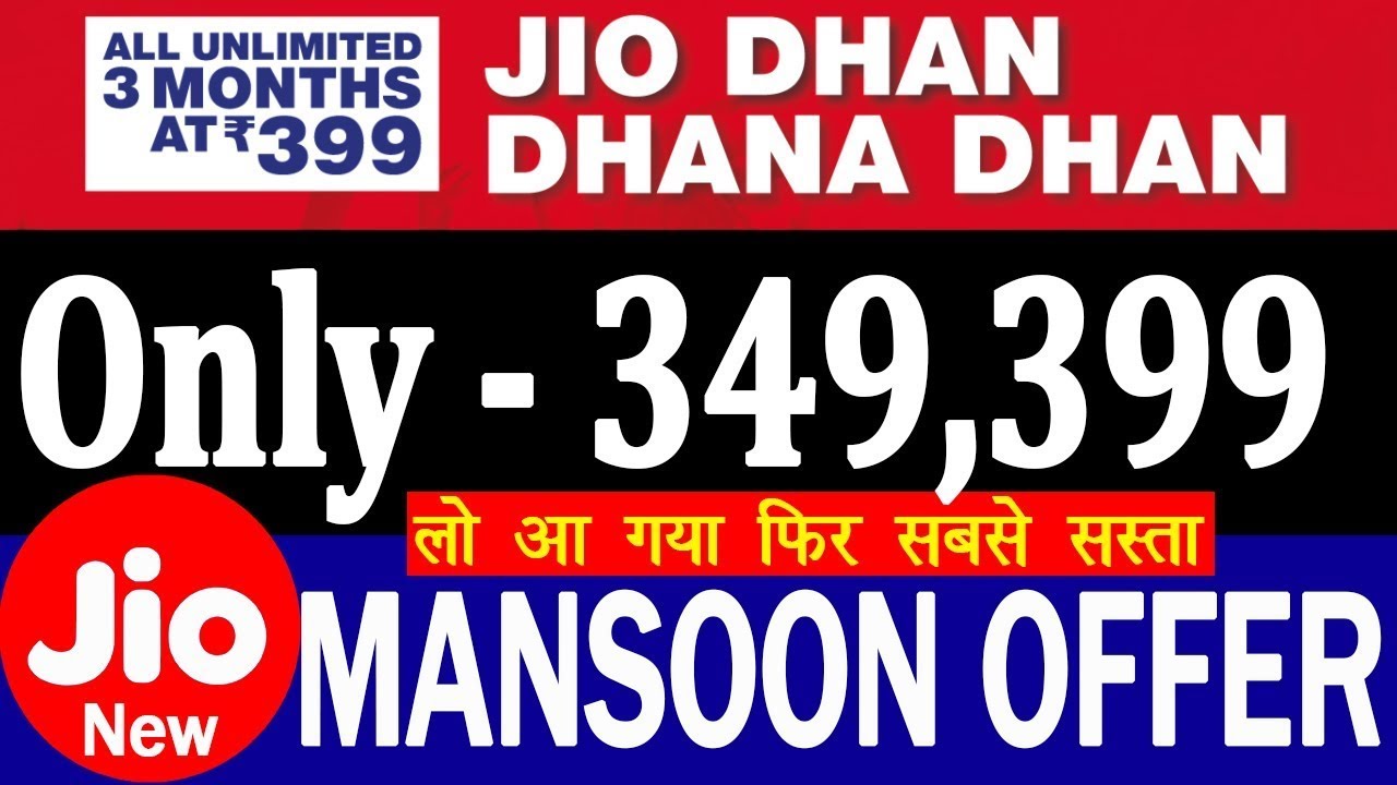 JIO New Offer 349, 399 | JIO New Monsoon OFFER Launched | JDDD New ...