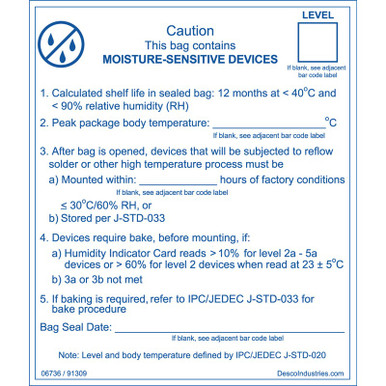 Label, Moisture Barrier IPC/JEDEC J-STD 020 - Absolute Scientific Products