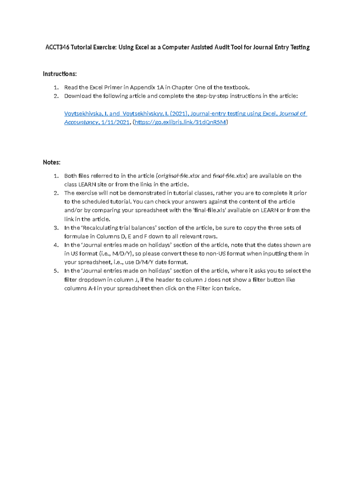 ACCT346 Tutorial: JE Testing with Excel as an Audit Tool - Studocu