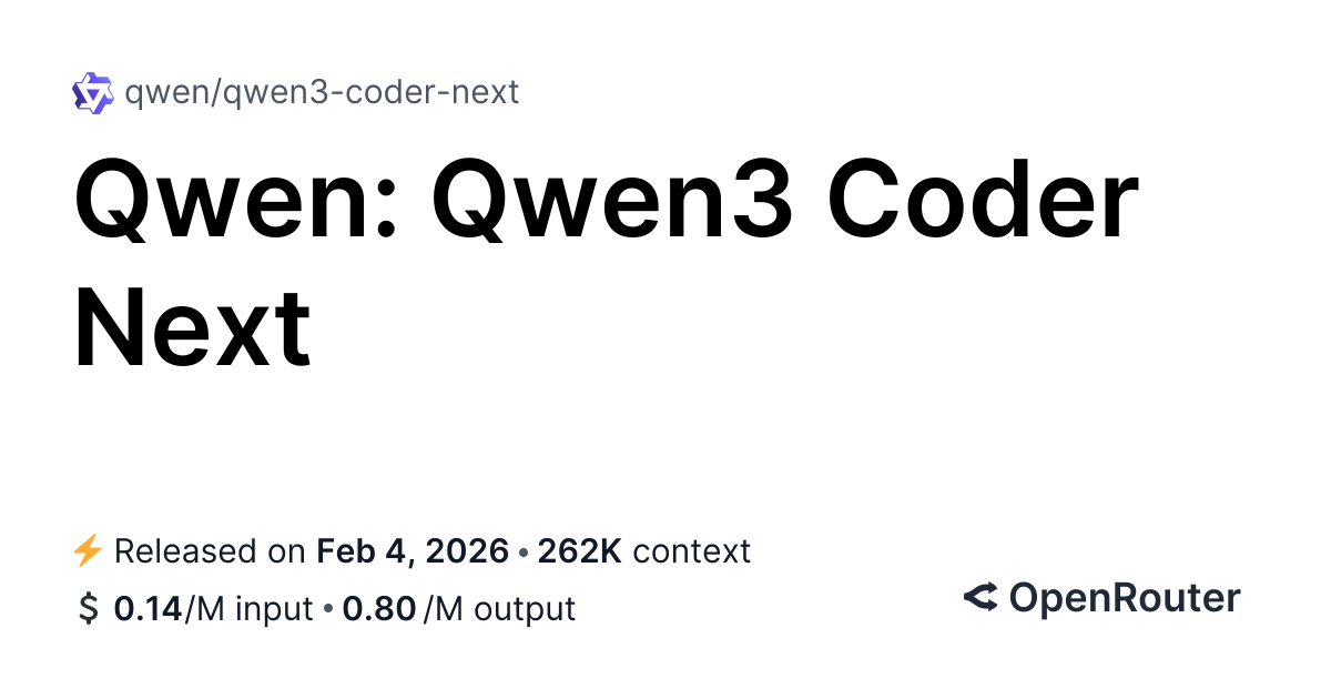 Qwen3 Coder Next - API Pricing & Providers | OpenRouter