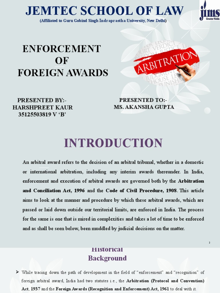 Jemtec School of Law: Enforcement OF Foreign Awards | PDF | Arbitration ...