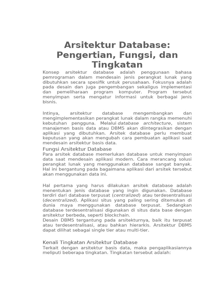 Arsitektur Database Dan Jenis - Jenis Basis Data | PDF