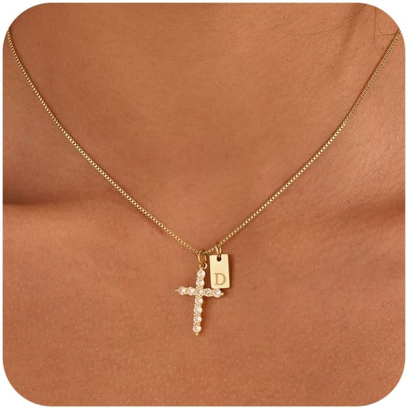 18K Gold Plated Cross Initial Necklace for Women Non Tarnish Dainty ...