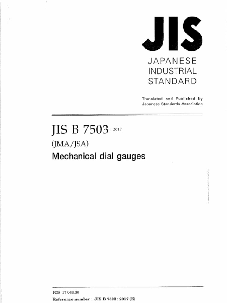 JIS B 7503 2017 (JMA JSA) Mechanicl Dial Gauges | PDF