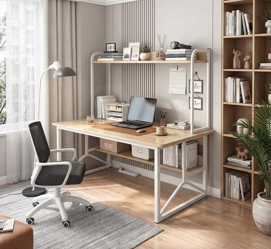 🪜 Apartment Bedroom Computer Table Study Desk With Bookshelf Display ...
