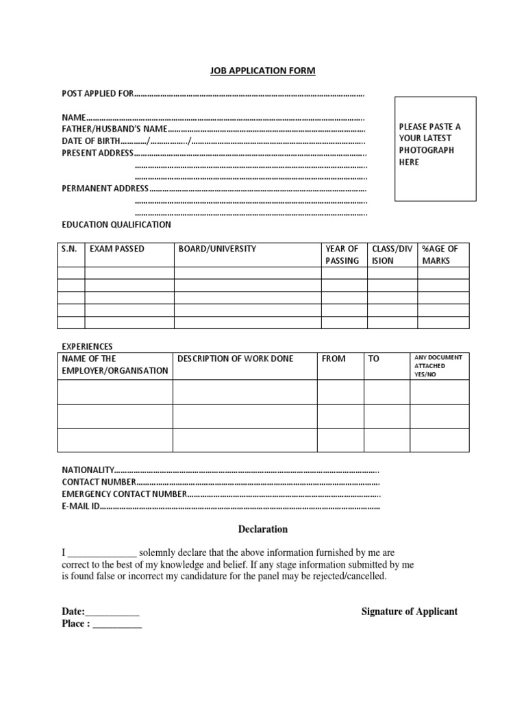 Job Application Cum Declaration (1) | PDF