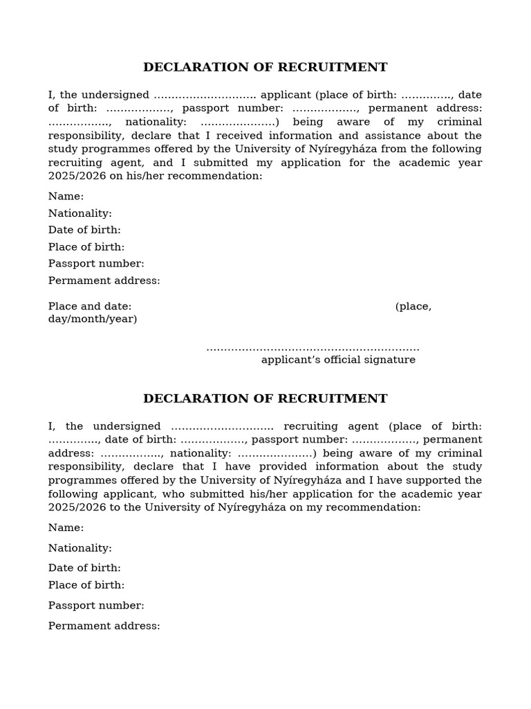 Declaration of Recruitment For The Academic Year 2025 - 2026 | PDF