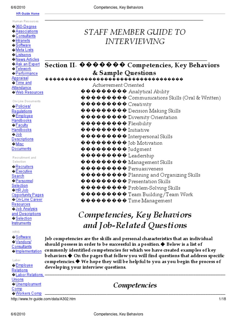 Staff Member Guide To Interviewing: Competencies, Key Behaviors and Job ...