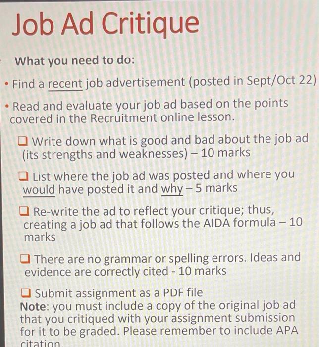 Solved Job Ad Critique What you need to do: Find a recent | Chegg.com