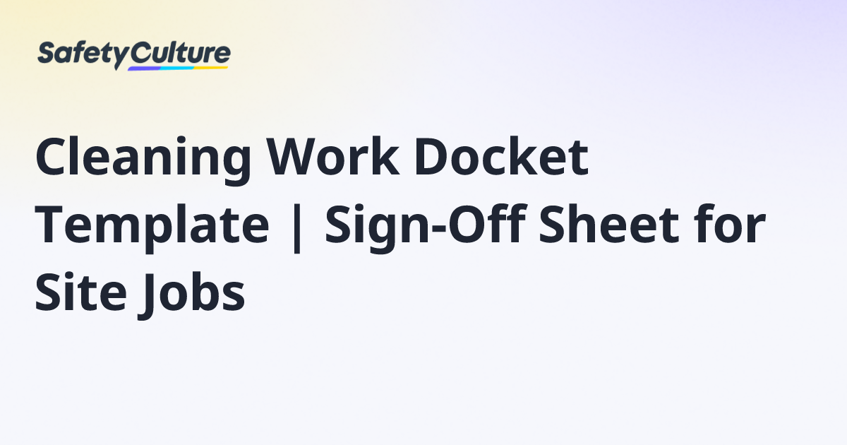 Cleaning Work Docket Template | Sign-Off Sheet for Site Jobs | Free ...