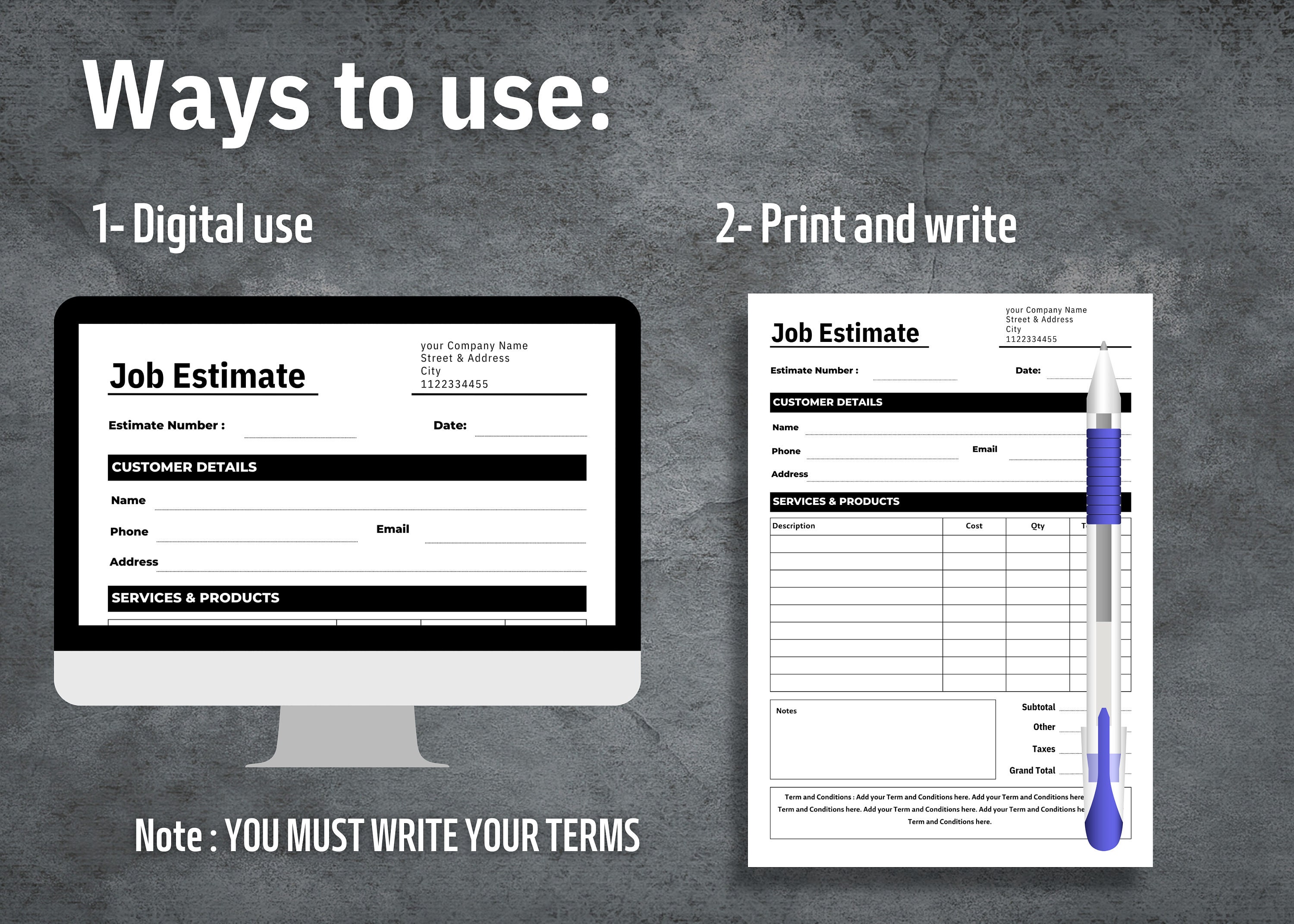 Job Estimate Forms - Editable and Printable