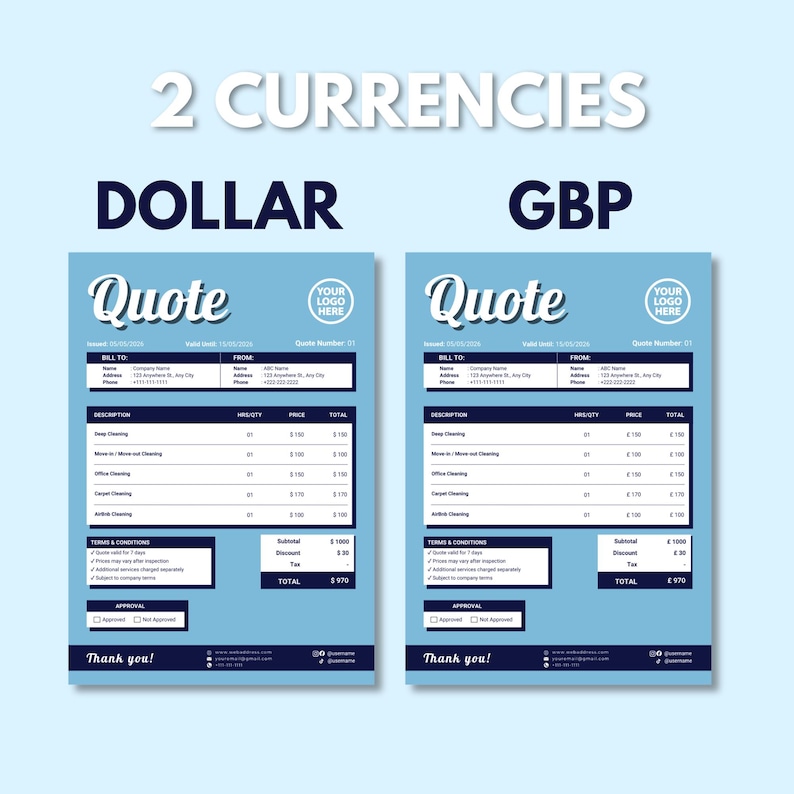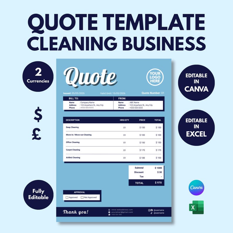 Cleaning Quote Template Canva Excel, Editable Cleaning Estimate Form ...