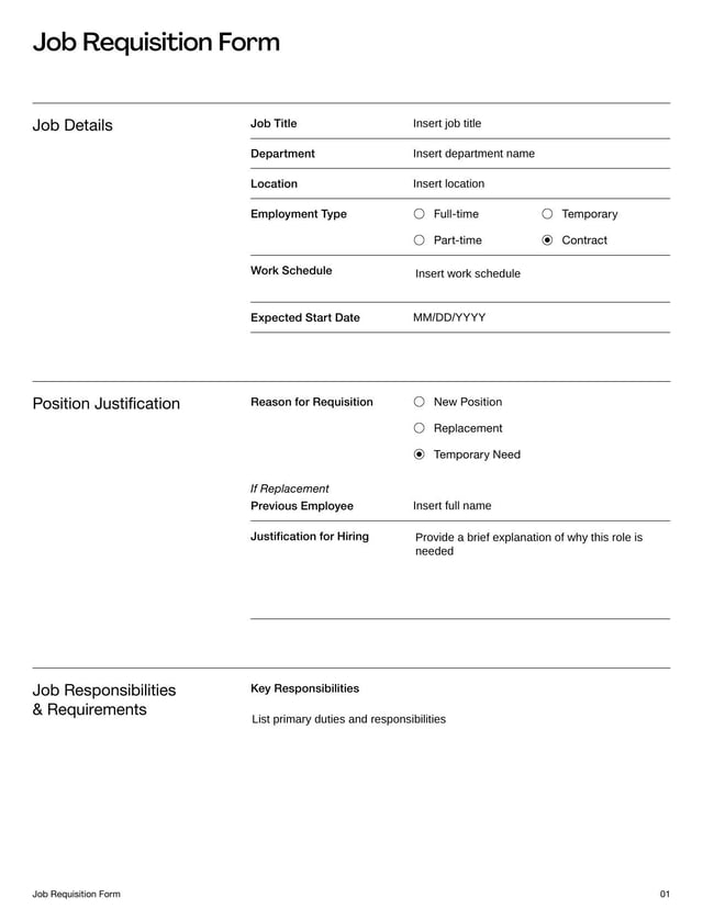 Job Requisition Form: HR Template (word, Google Doc, PDF) - Etsy