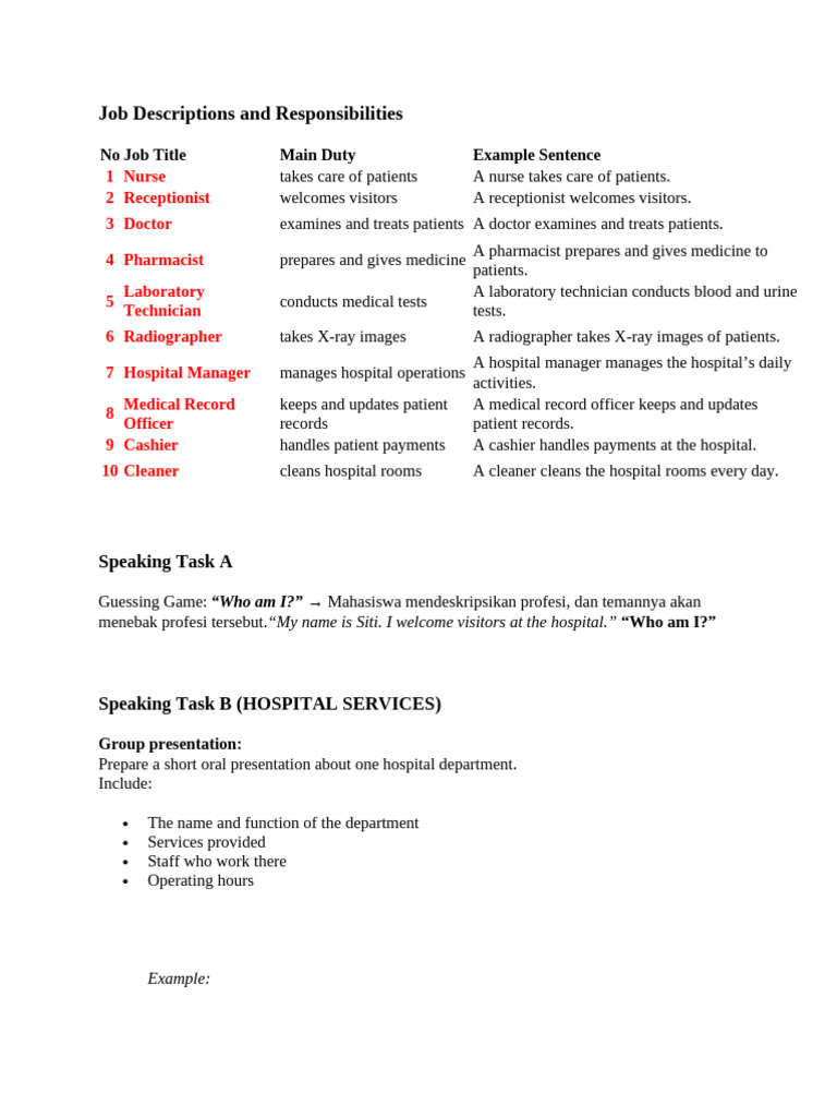 Job Descriptions and Responsibilities | PDF