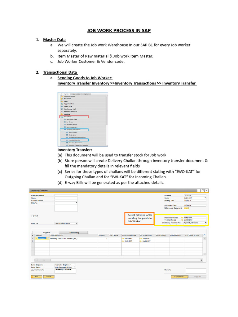 Job Work Process in SAP | PDF | Inventory | Receipt