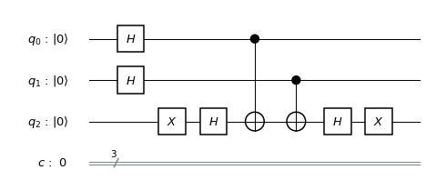 Quantum circuit for the Deutsch–Jozsa algorithm. This circuit uses an ...