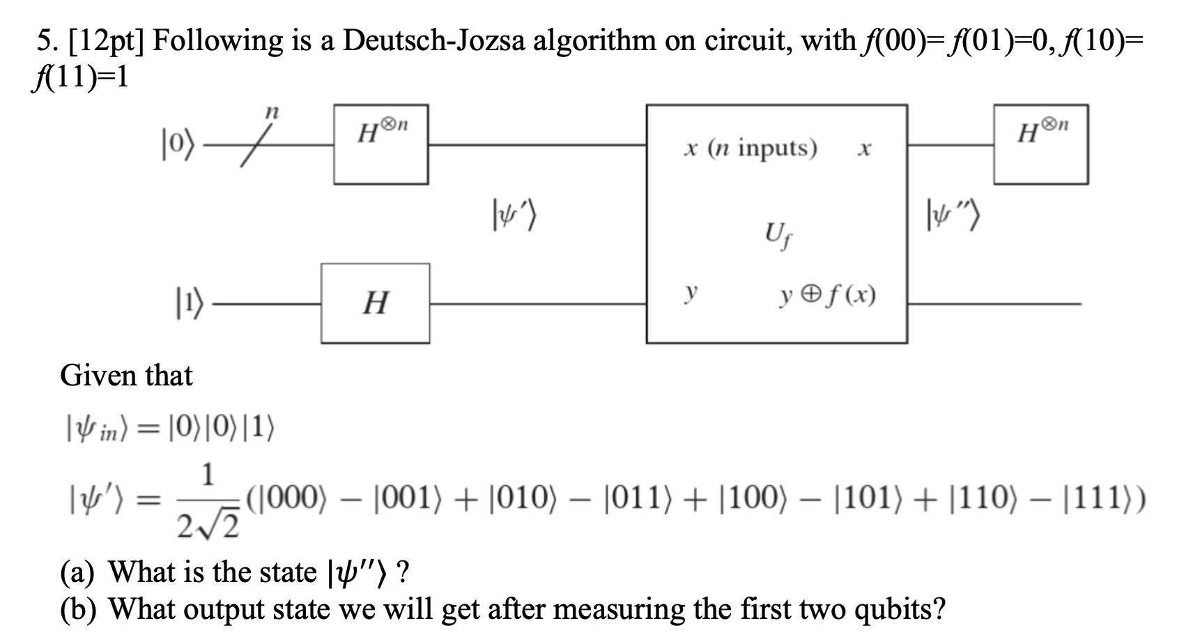 Solved 5. [12pt] Following is a Deutsch-Jozsa algorithm on | Chegg.com