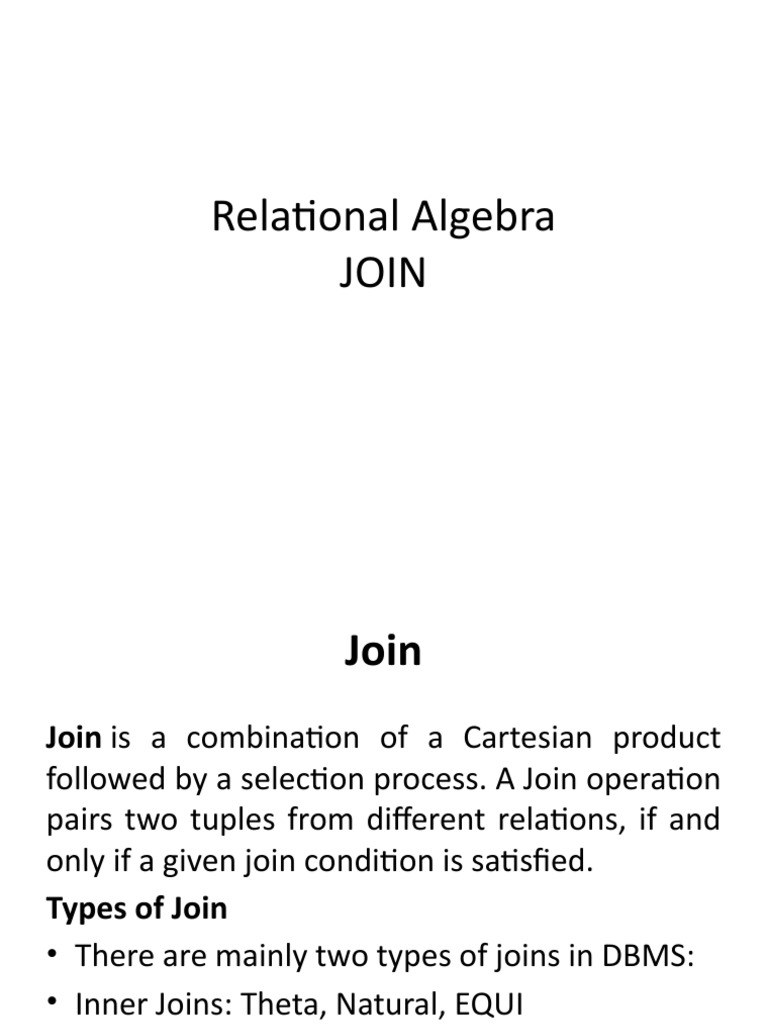 L34: Introduction to Joins and its types in Relational Algebra | Join ...