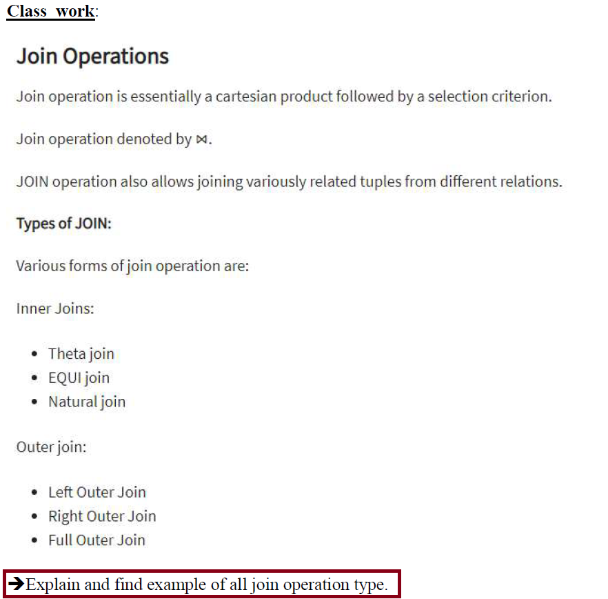 Solved Class work: Join Operations Join operation is | Chegg.com