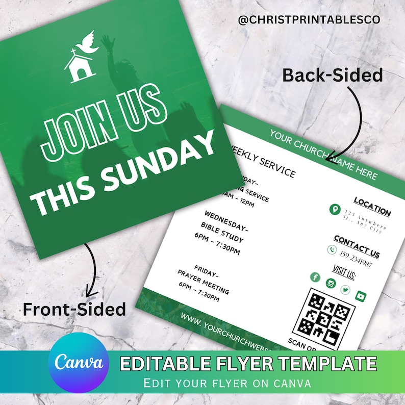 Editable Join Us QR Code Church Invite Square Green Card, Church ...