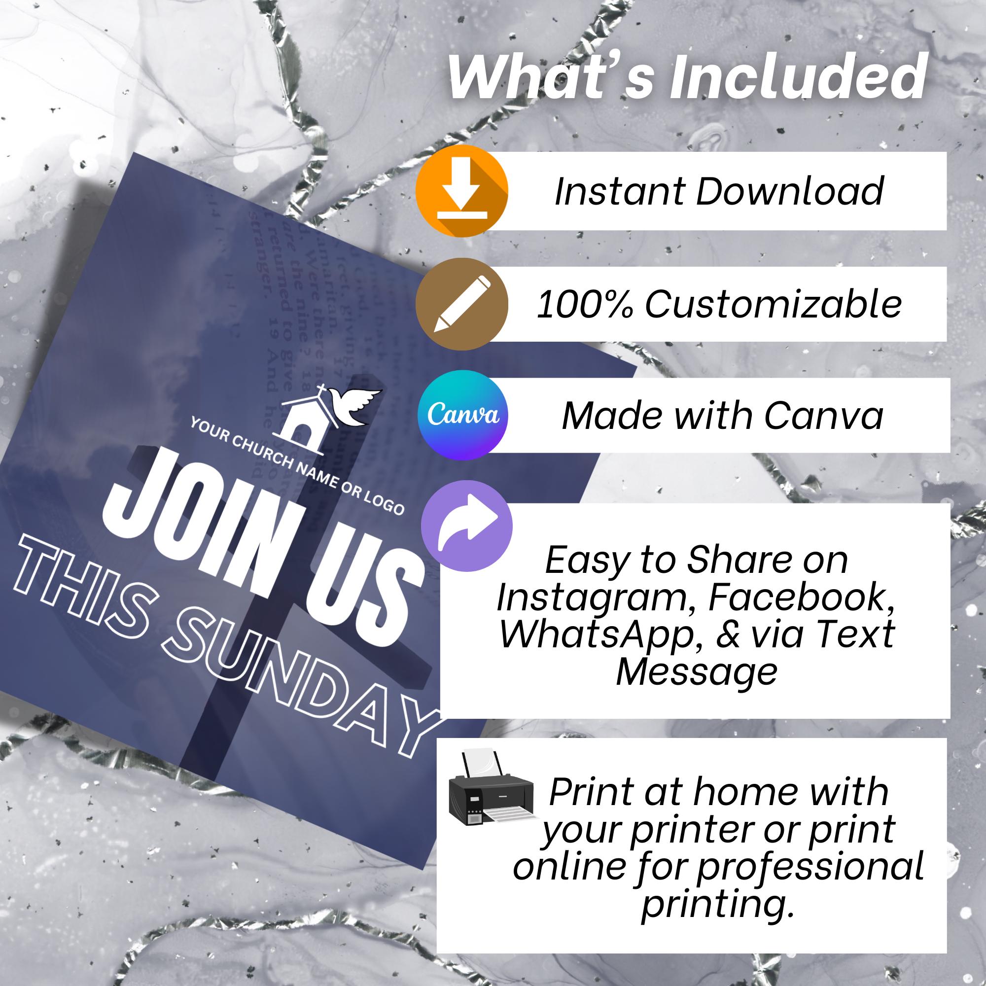 Join Us QR Code Church Invite Square Card, Editable Church Connection ...