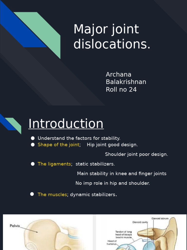 Major Joint Dislocation | PDF | Shoulder | Musculoskeletal System