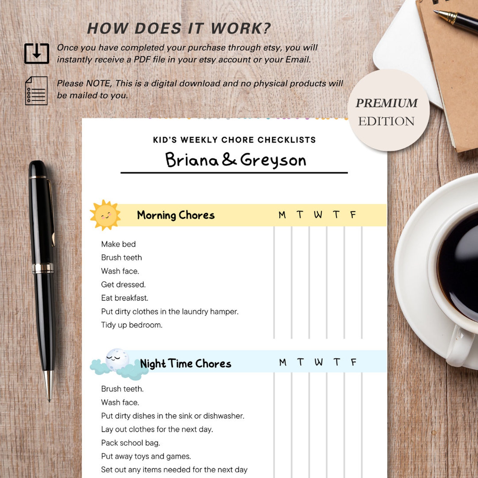 Kids Journal Core Chores Checklist, Children's Chore Chart, Task ...