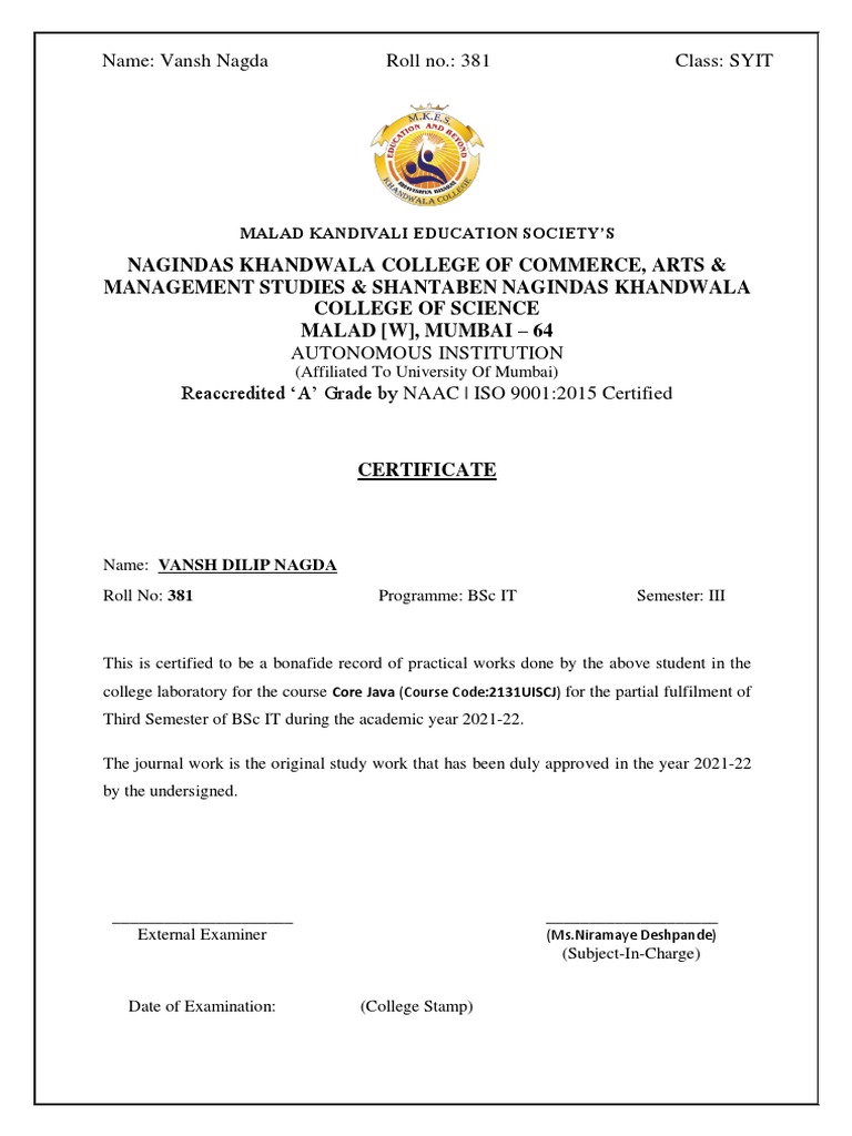 Student Practical Work Journal - Core Java | PDF | Class (Computer ...
