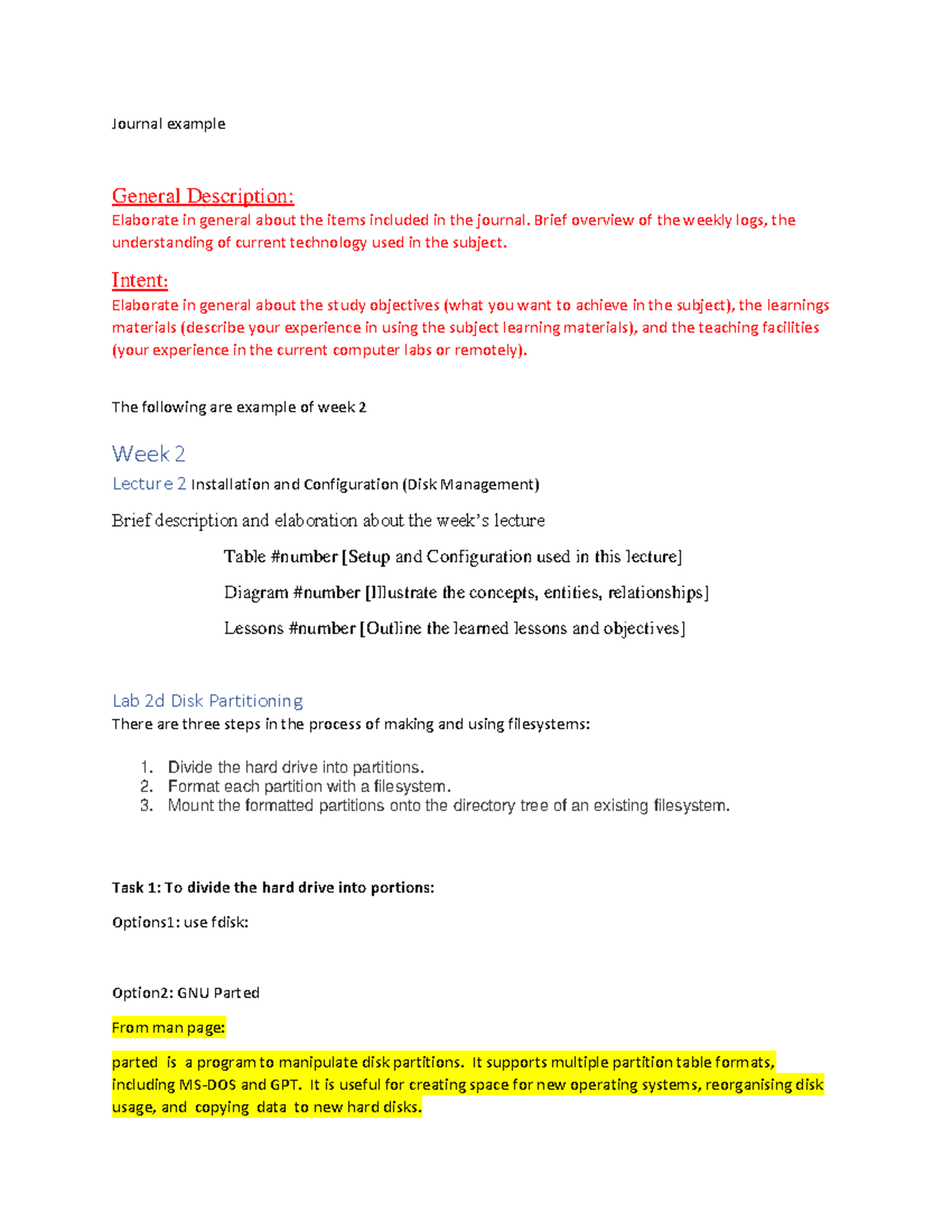 Luh - Brief description - Daily Journal For example po dito sa ...