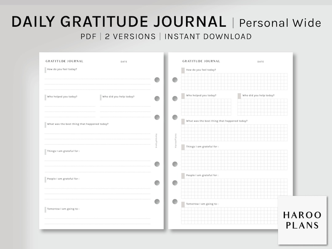Daily Gratitude Journal | Personal Wide Printable Planner Inserts ...