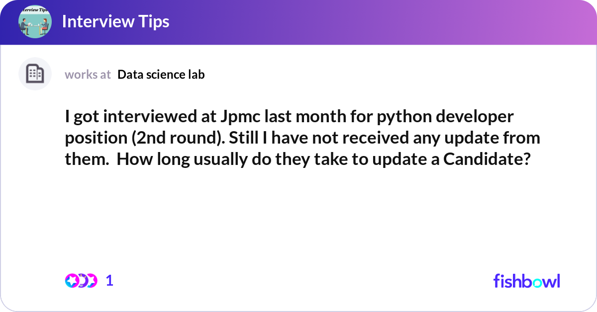 I got interviewed at Jpmc last month for python de... | Fishbowl