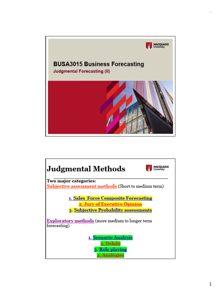 SOLUTION: Overview of the Judgemental Forecasting Method - Studypool