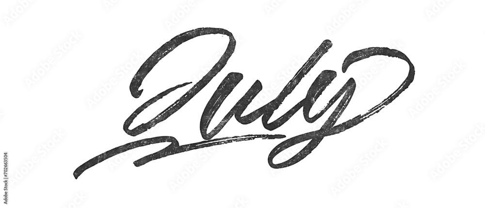 July lettering handwritten sign, Hand drawn grunge calligraphic text ...