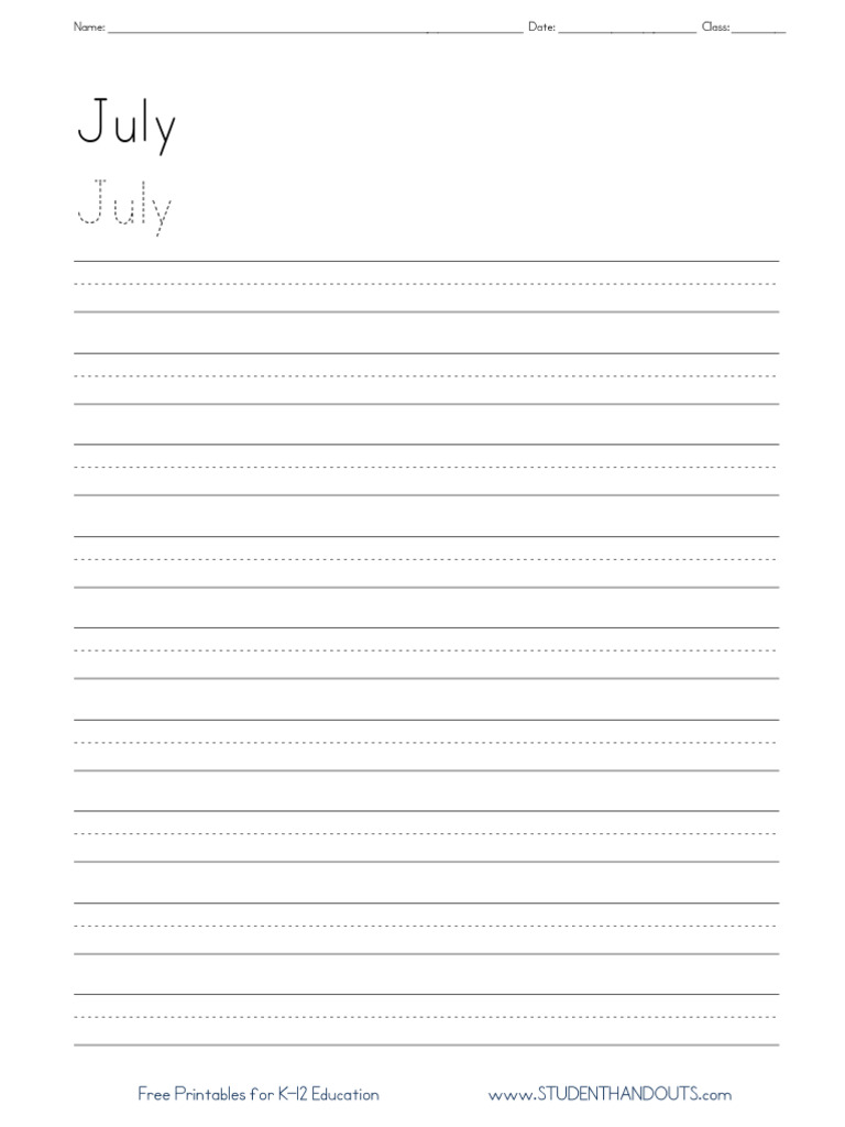 Handwriting Lines | July for Teachers | Perfect for grades 1st, K, Pre ...
