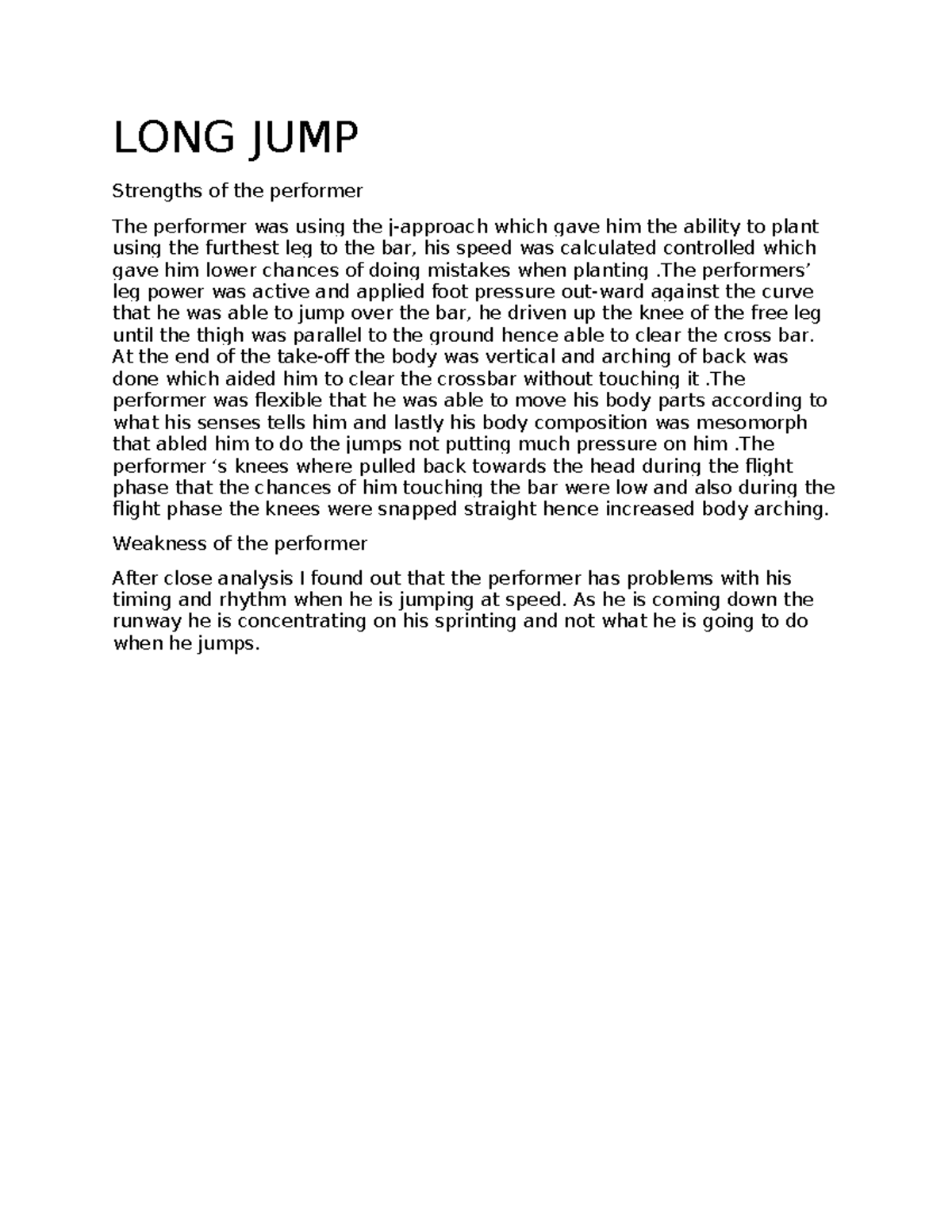 LONG JUMP - Student Notes on Performer Strengths & Weaknesses - Studocu
