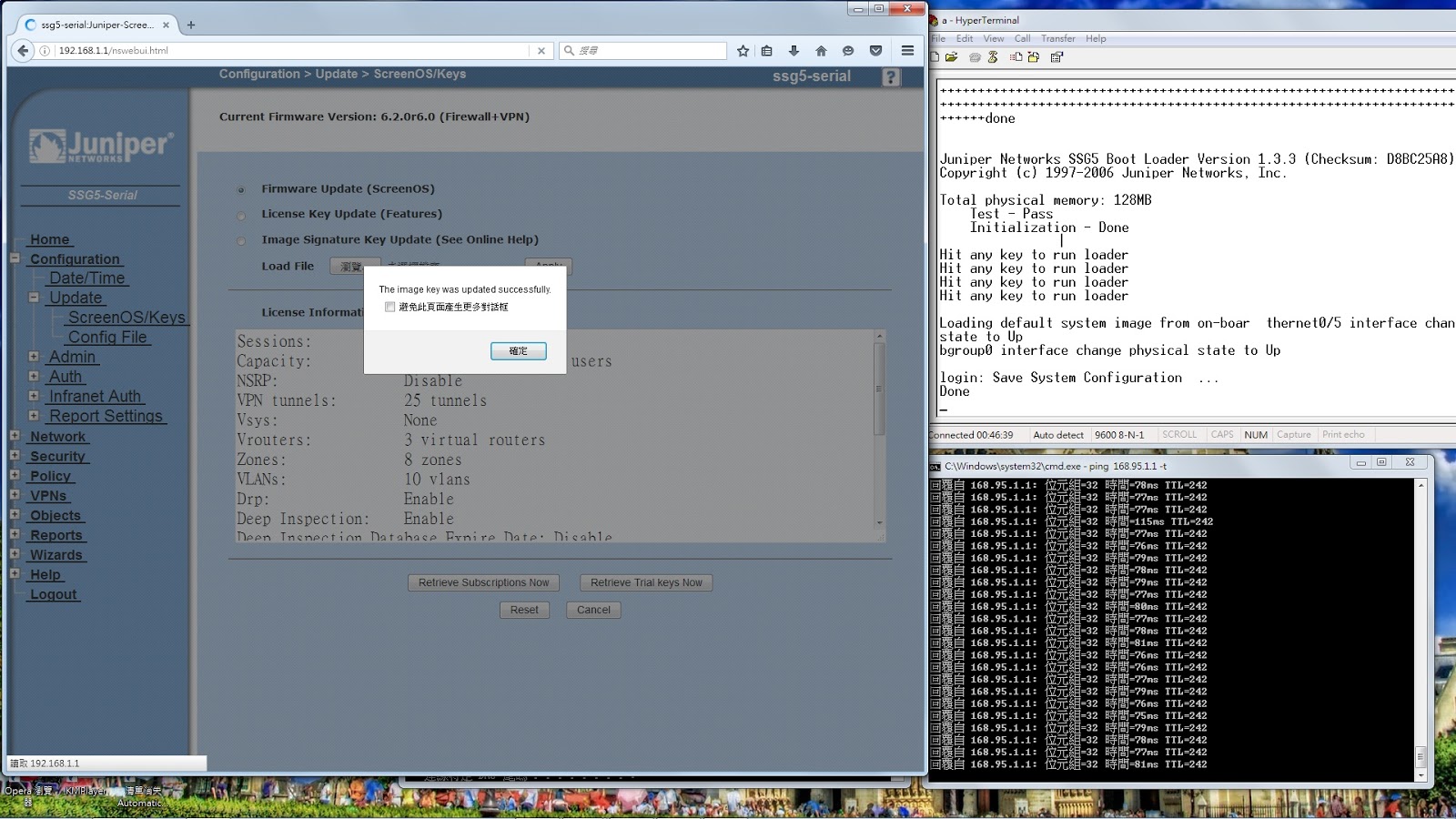 Juniper SSG5 防火牆ScreenOS的升級或降級:
