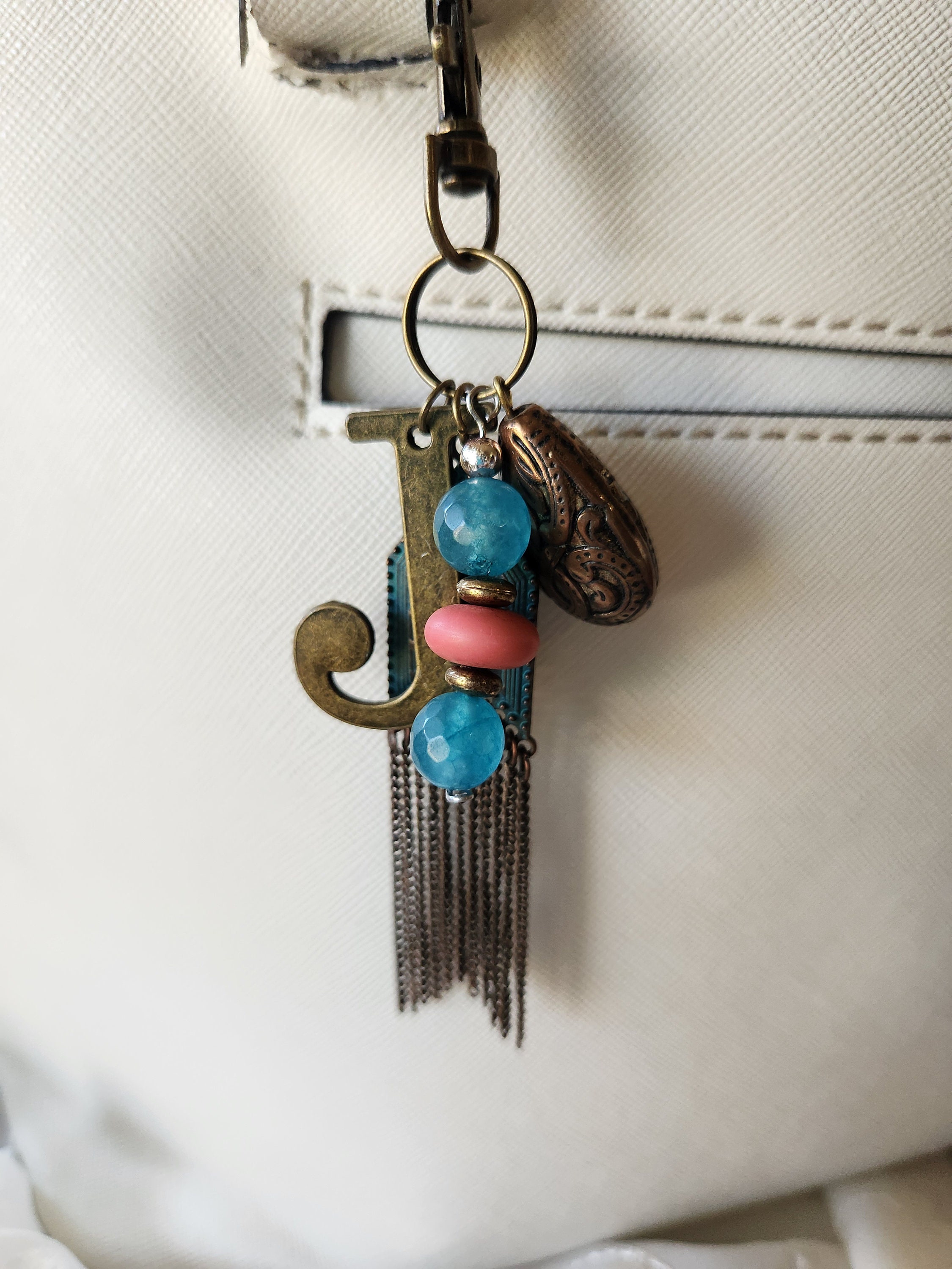 Purse/bag Charm Initial j Keychain Tassel Boho Beaded Junk Journal ...