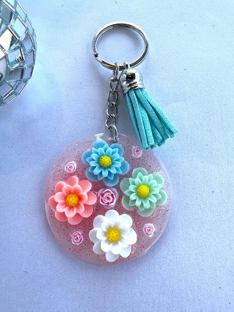 2” Flower Floral Sparkle Junk Keychain With Tassle - Etsy