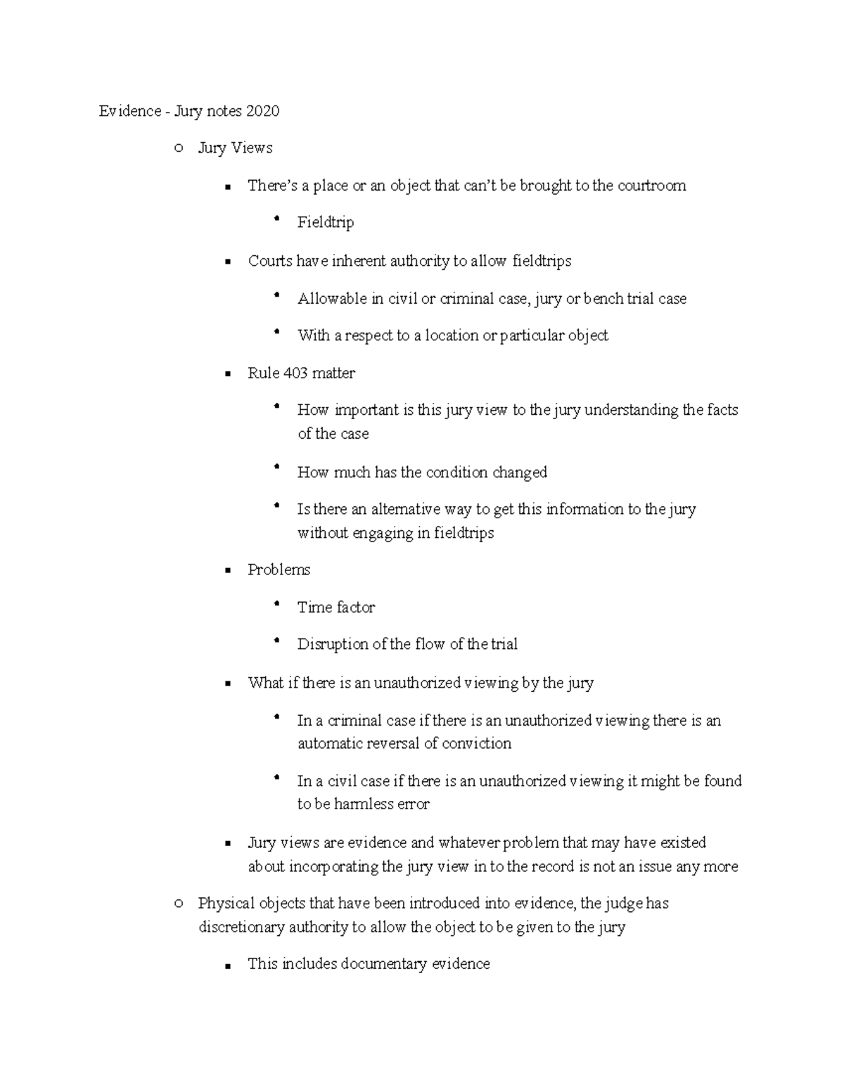 Evidence - Jury notes 2020 - Evidence - Jury notes 2020 o Jury Views ...
