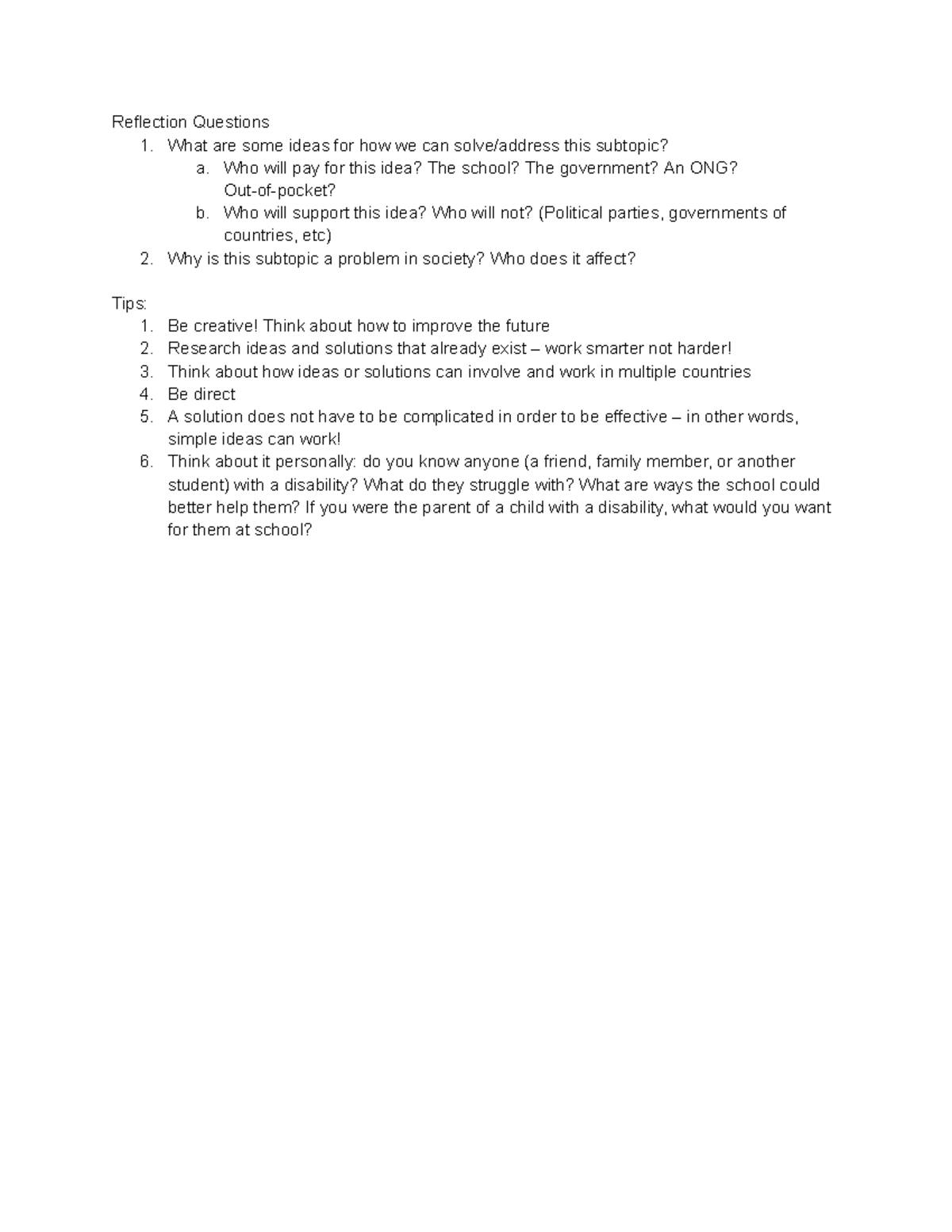 Resolution Reflection Questions - Reflection Questions 1. What are some ...