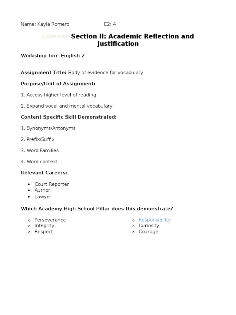 Academic Reflection Justification | PDF